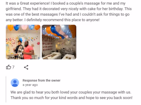 For positive reviews, keep your responses brief, personal, and authentic. Personalizing the response with the client’s name and mentioning specific services they enjoyed can make the thank-you feel genuine and thoughtful.