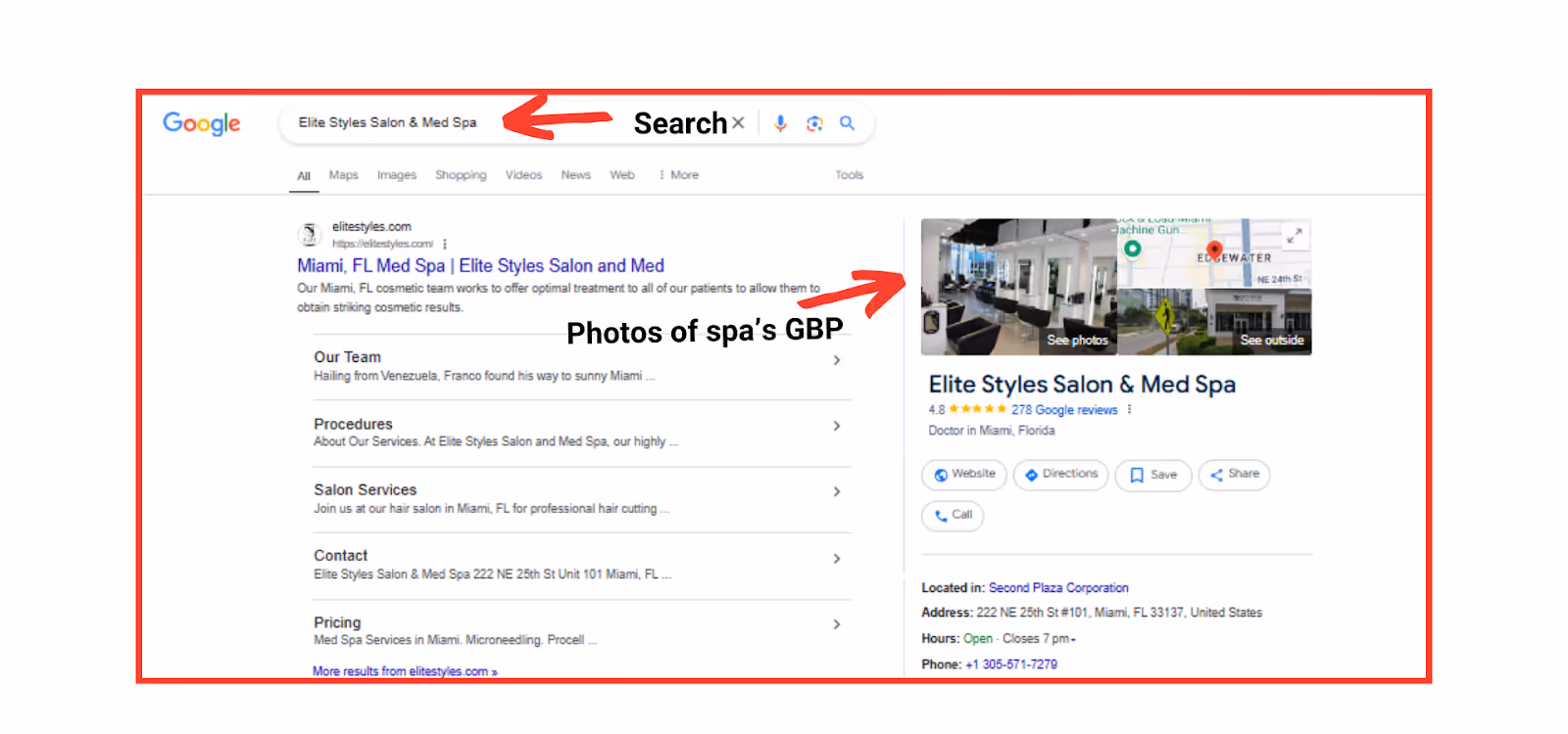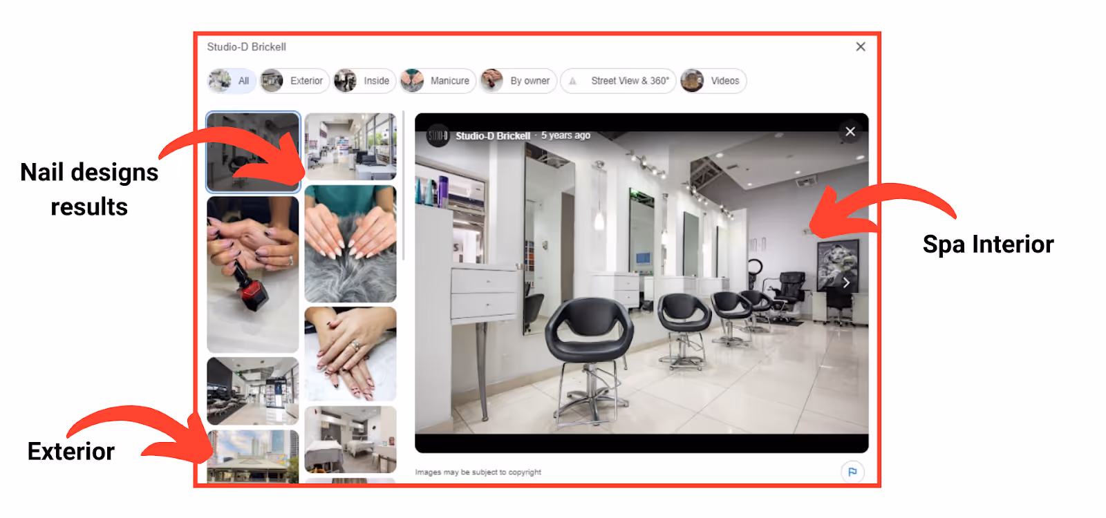 For example, below are the Google Business Profile photos of Studio-D Brickell.