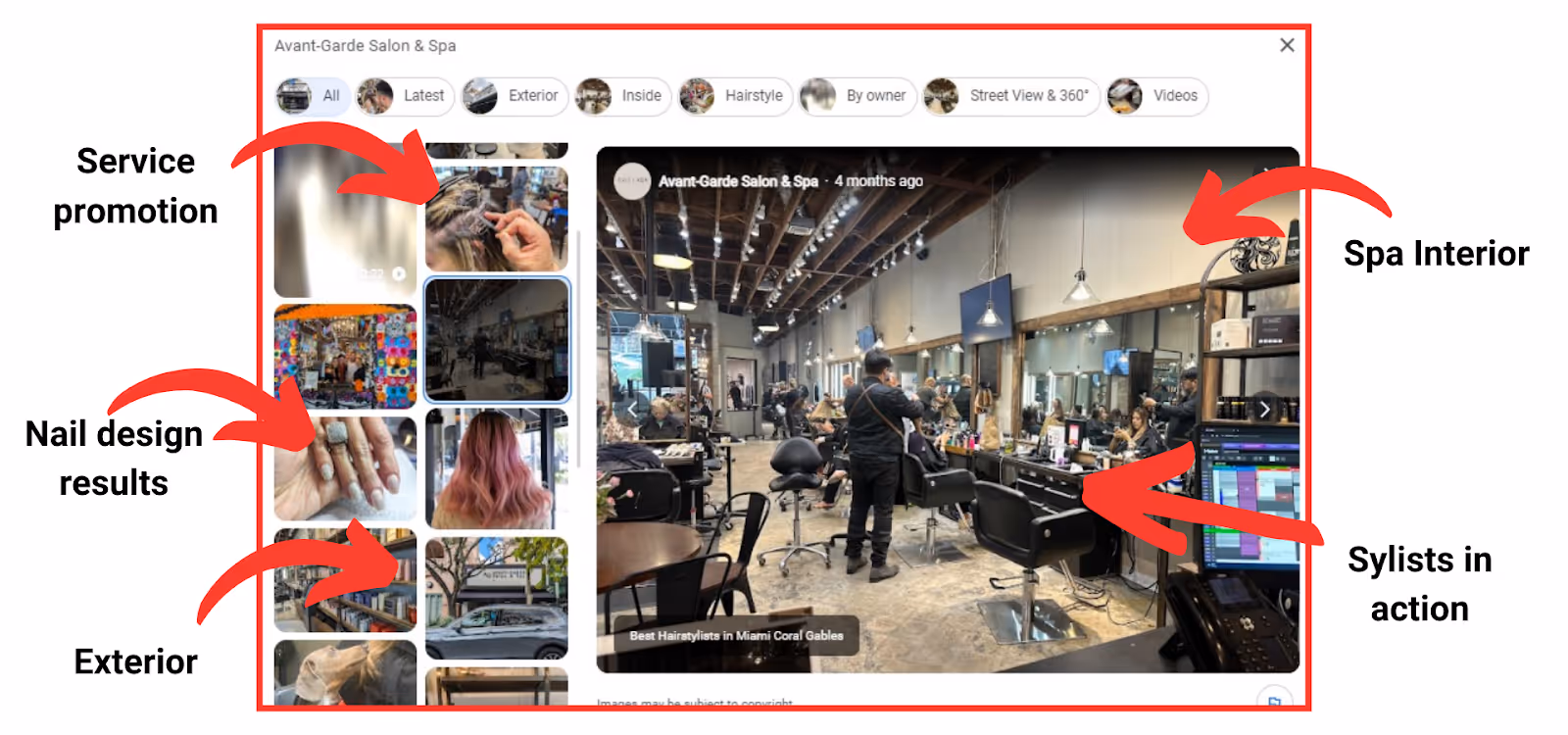 - Google Business Profile Photos Matter: Your photos are often the first impression potential clients have of your spa or salon. High-quality, relevant images can boost engagement and search rankings.