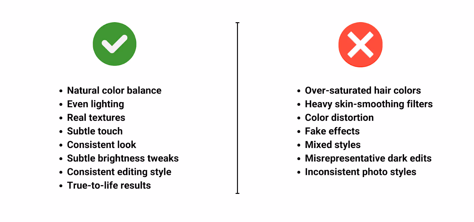 Editing can elevate your photos from good to great. But keep it subtle—you want your images to look real, not overly processed.