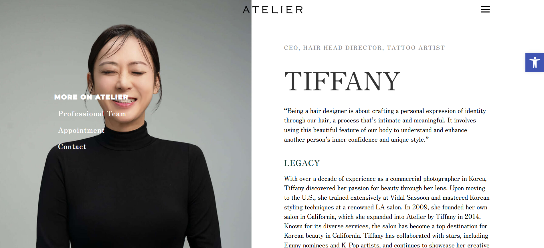 Atelier by Tiffany on S Western Ave was founded by Tiffany Shin, who trained at Vidal Sassoon before opening her first California salon in 2009 and expanding into Atelier by Tiffany in 2014. The salon has become a leading destination for Korean beauty in California, known for blending Korean styling techniques with a wide range of color and treatment services. The team has collaborated with Emmy nominees and K-pop artists and runs the Trend Vision hair show to support professional development in the industry. The salon is open seven days a week and welcomes new clients with online booking. With over 2,000 reviews at 4.9, it is one of the most reviewed salons in all of Los Angeles.